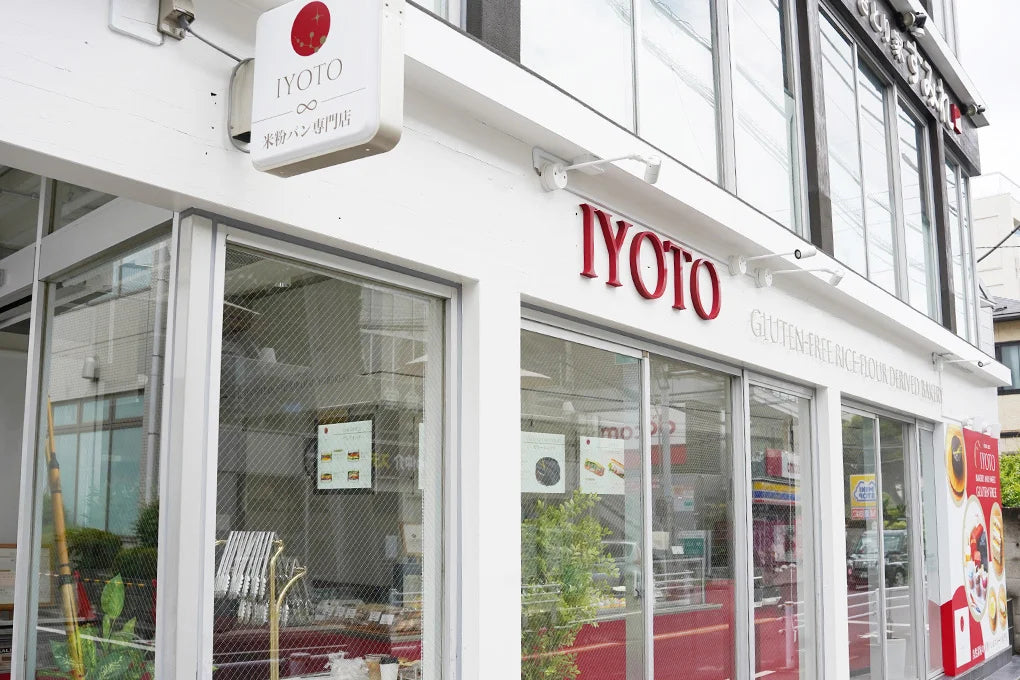 IYOTOは東京都目黒区、駒澤大学駅から徒歩2分の所に本店を構えております。オンラインショップでは販売していない米粉を使った惣菜パンやマフィン、ケーキなども販売しておりますので是非お越しください。