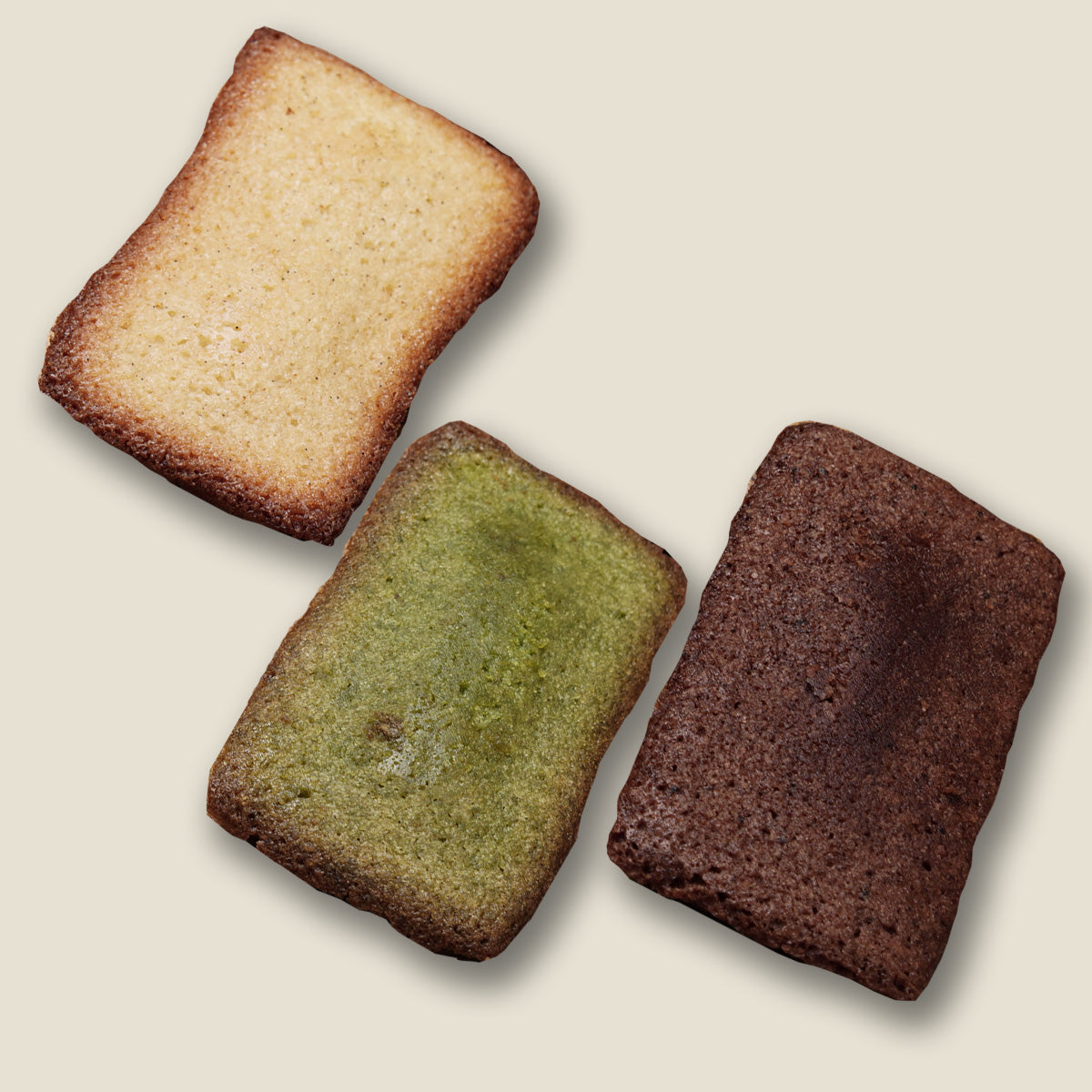 バター香る米粉のフィナンシェ。しっとりな口当たりでお茶菓子にもピッタリ。プレーン、抹茶、ココアの3種入りです。